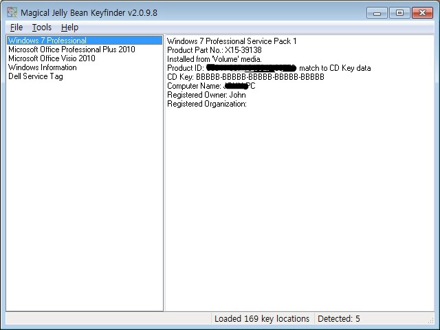 1. Magical Jelly Bean의 Keyfinder프로그램