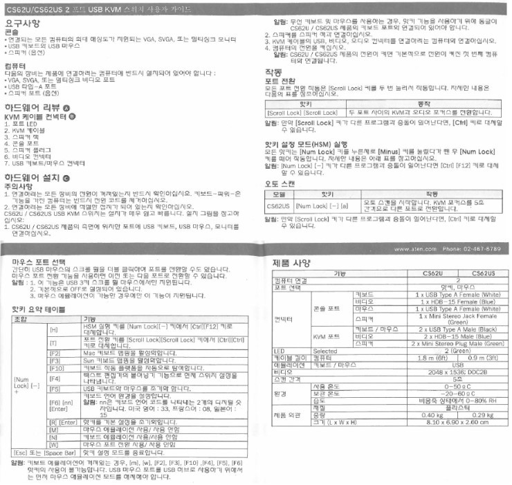 일단 필자는 에이텐 KVM 스위치를 사용하고 있고 CS62US 모델을 사용중이고